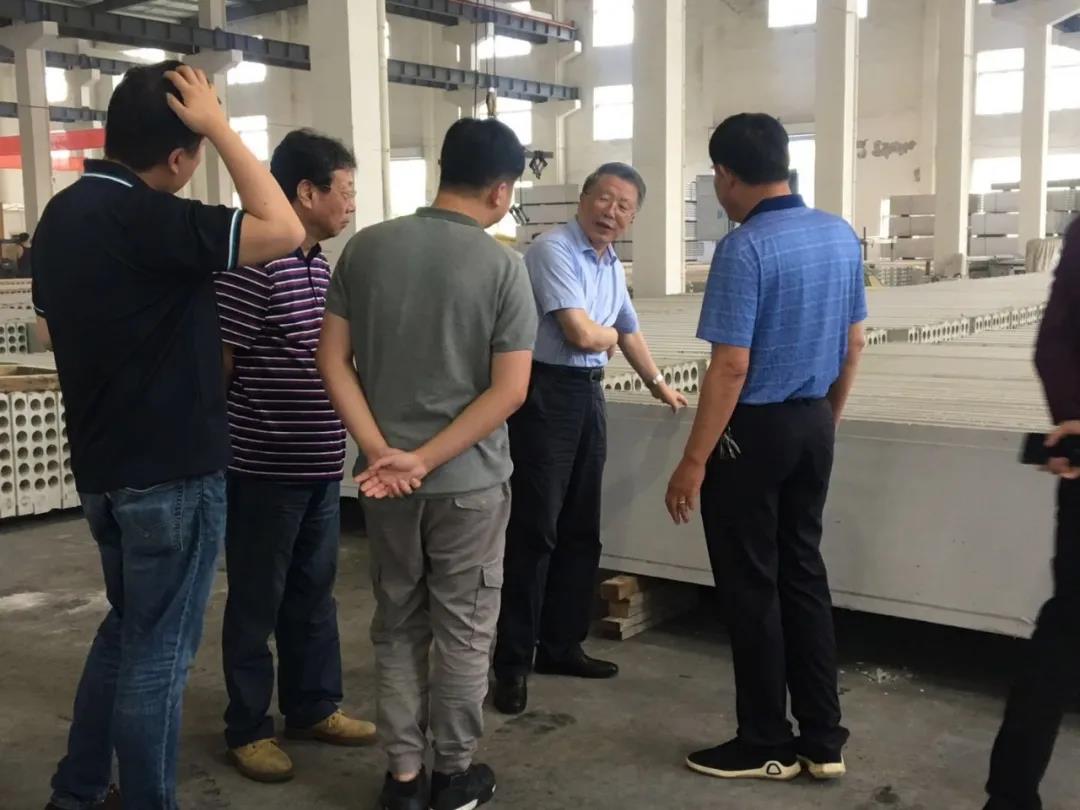 董事长汤建忠与上海专家们进行了技术交流,上海市绿色建筑协会秘书长王宝海与上海市建设协会副会长顾建国均对生产出来的墙板表示认可。